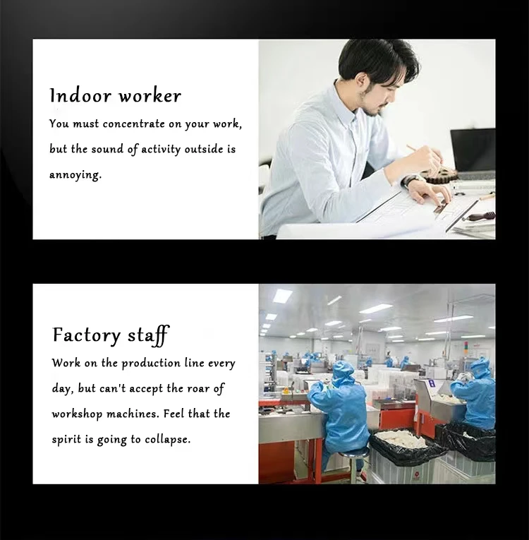 3.Soft texture, wearing light if nothing.Small and soft, no swelling ears, selected memory sponge material, low density, less gap, noise reduction.